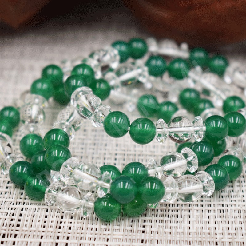 Pulsera Cristal de roca y Cuarzo teñido verde