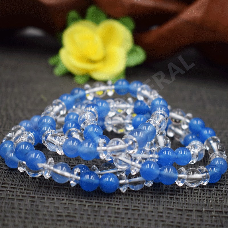 Pulsera Cristal de roca y Cuarzo teñido azul