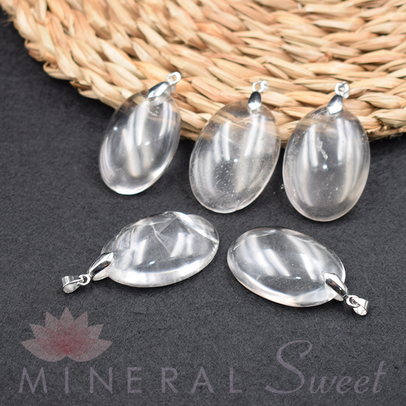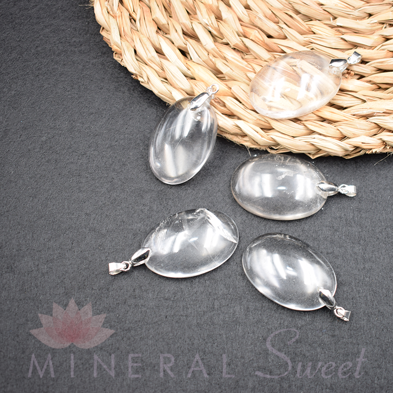 Colgante en Cristal de roca, forma ovalada.