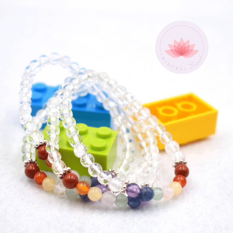 Pulsera niña en Cristal de rocha y perlas 7 chakras