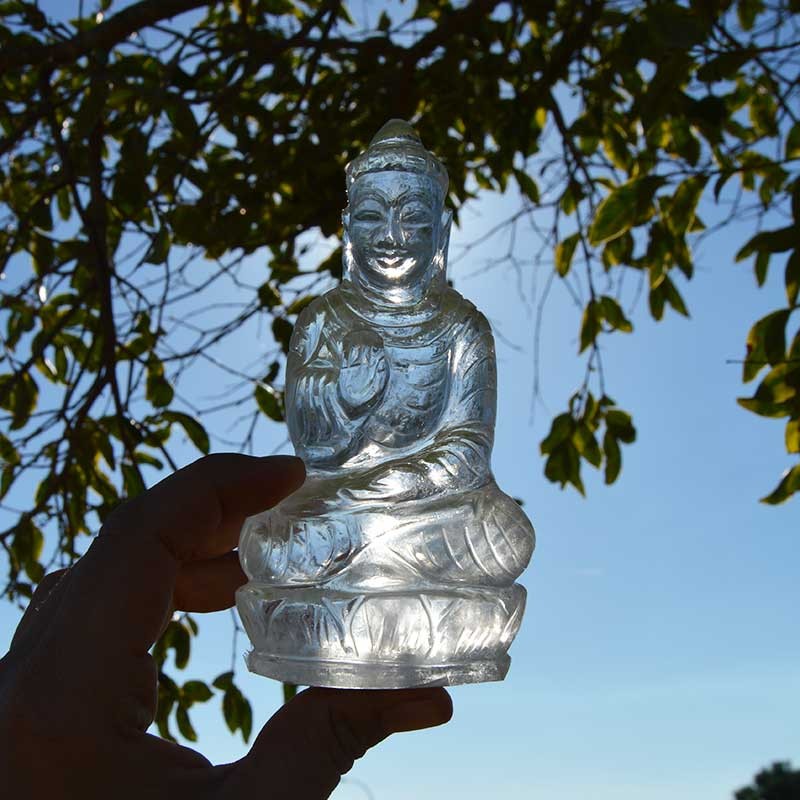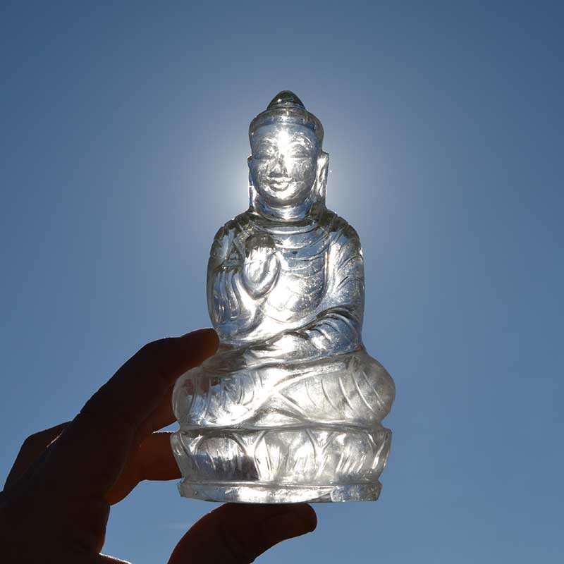 Bella imagen de Buda tallada en Cristal de roca.