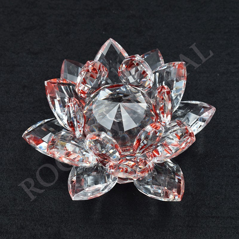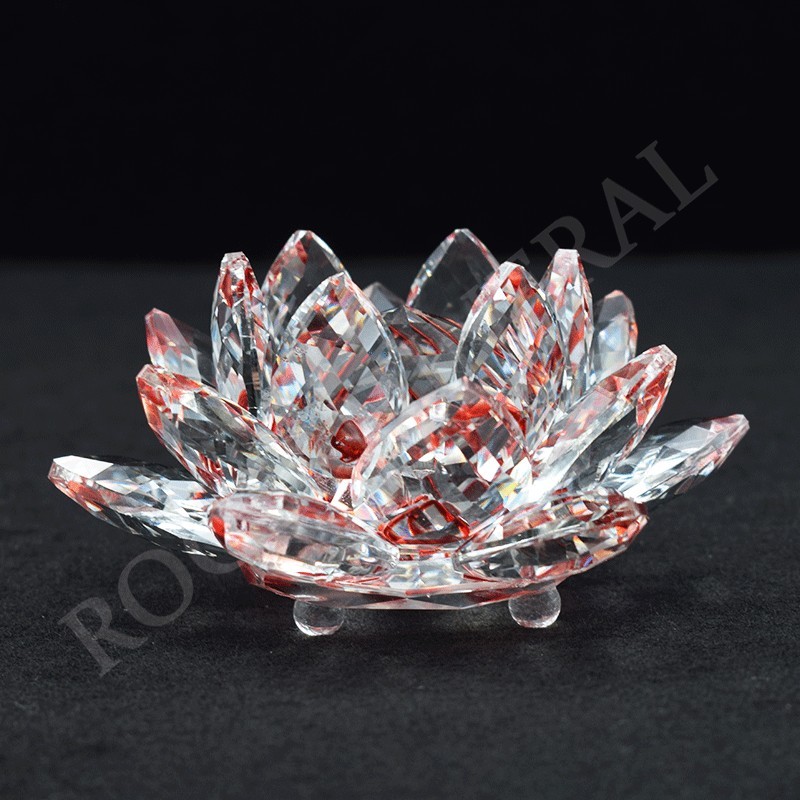 Loto Feng-shui en cristal, color rojo, 4cm de diámetro en su parte central, sin contar los pétalos.