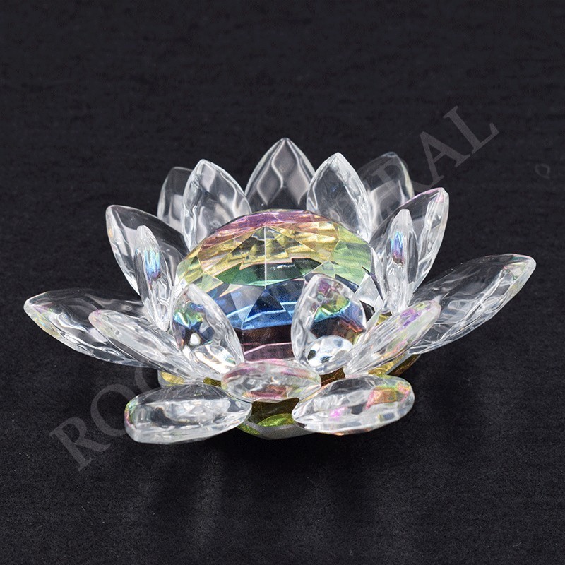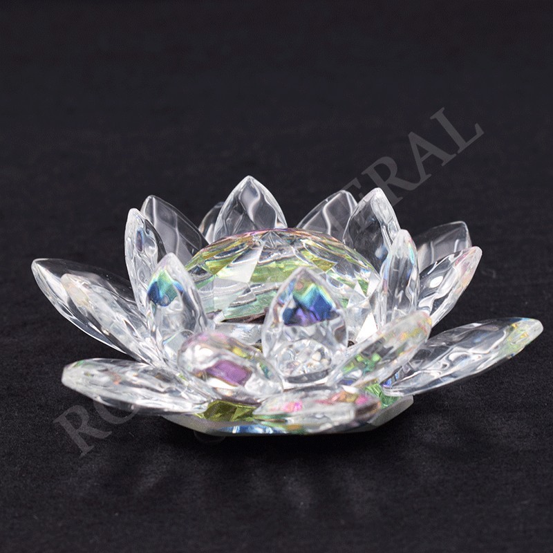 Loto de cristal con película arco iris. La medida se refiere al diámetro del corazón, sin contar los pétalos.