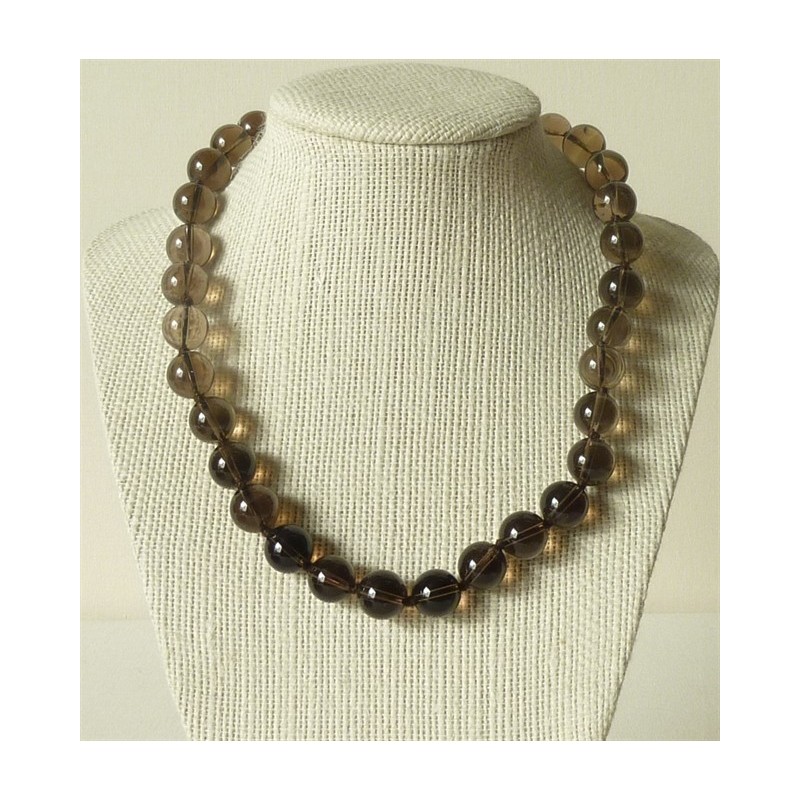 Collar Cuarzo ahumado perlas redondas 12mm