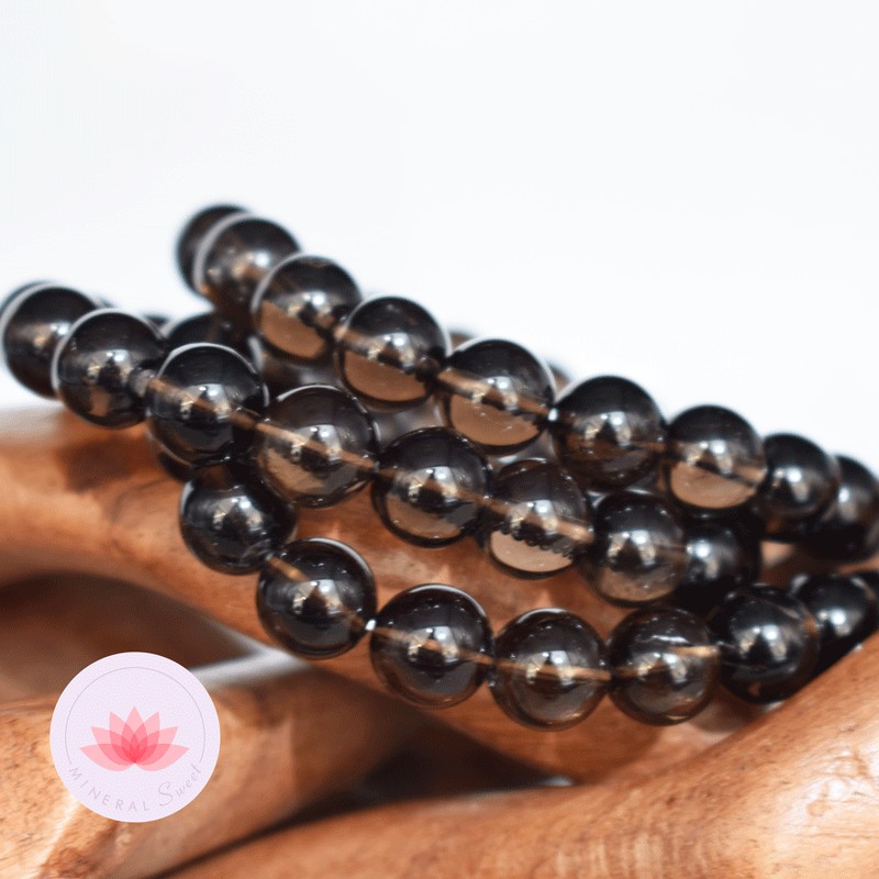 Pulsera Cuarzo ahumado perlas redondas 10mm