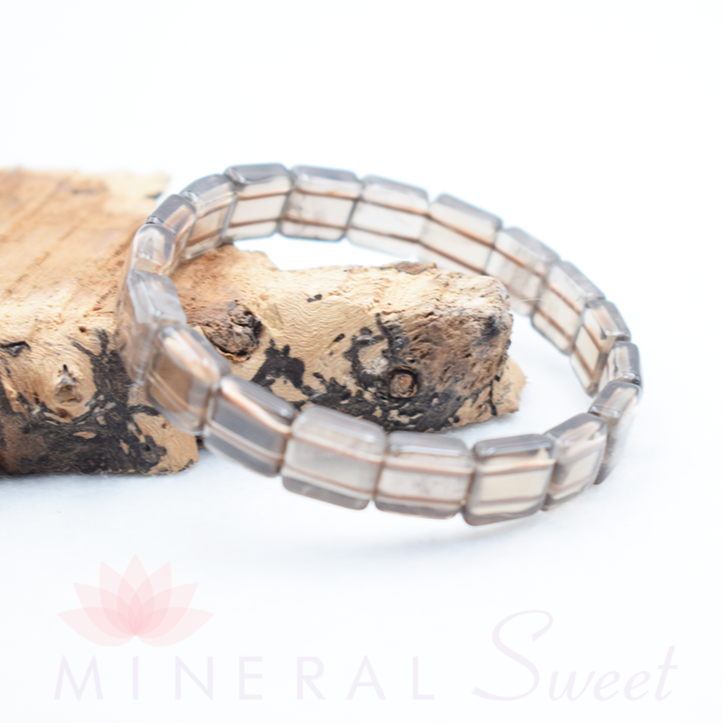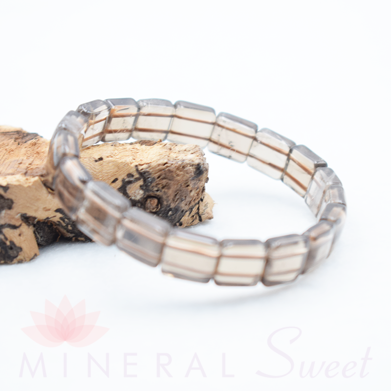 Elegante pulsera en Cuarzo ahumado, perlas cuadradas de 10mm