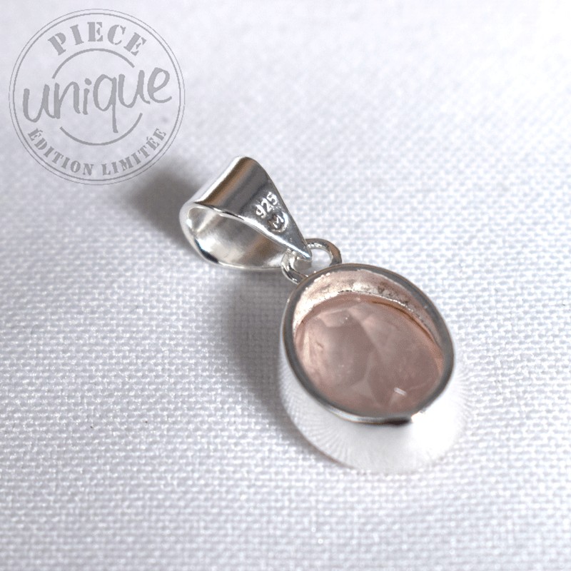 Bello colgante en Cuarzo Rosa, montado en plata de 925 y facetado.