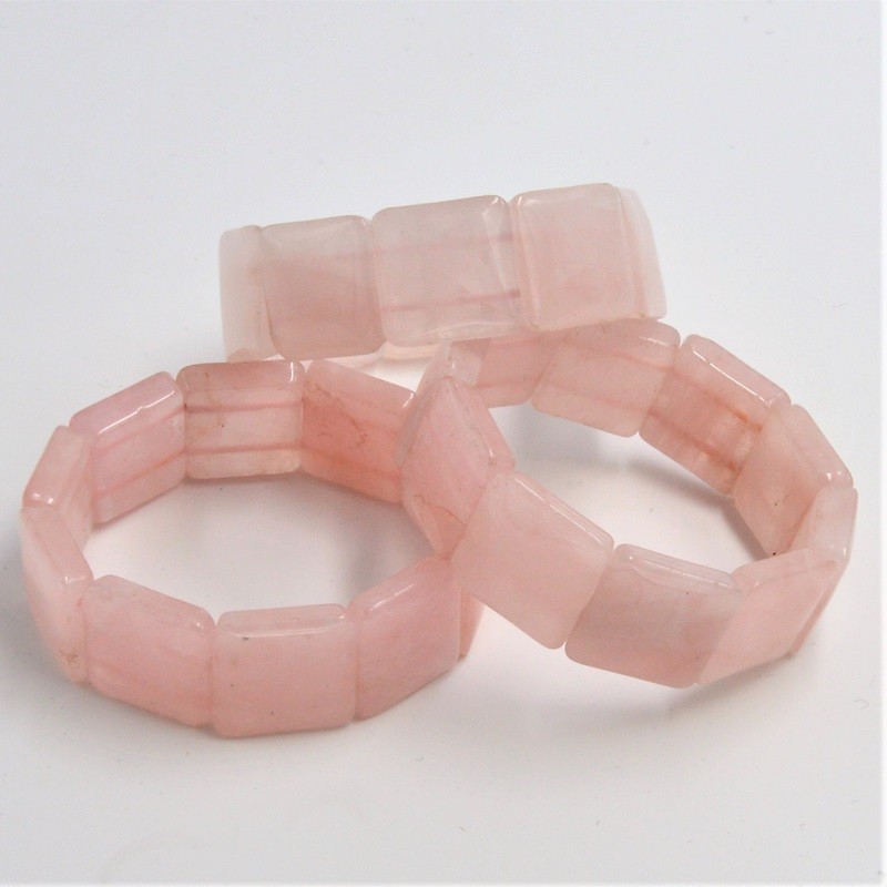Elegante pulsera en Cuarzo rosa, perlas talladas cuadradas de 20mm