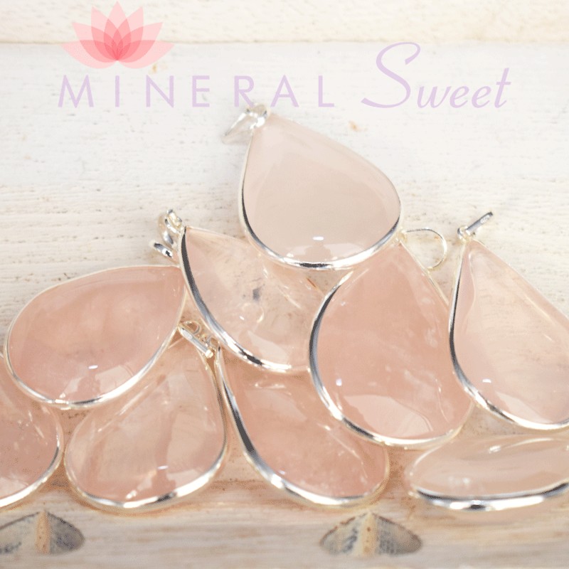 Colgante gota Cuarzo rosa y plata