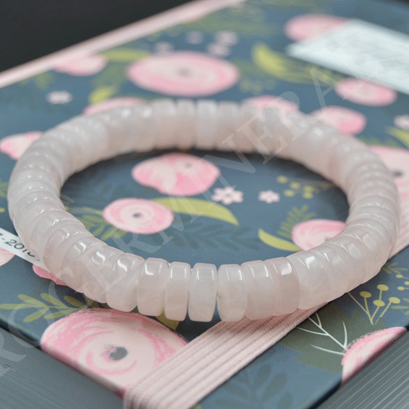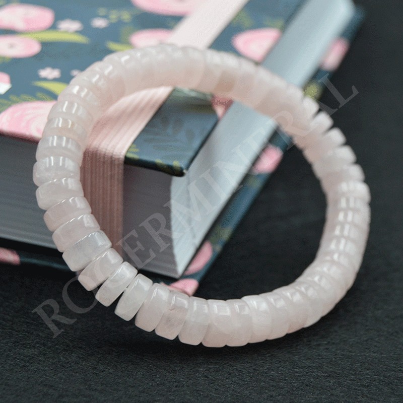 Pulsera Cuarzo rosa perlas planas 10mm