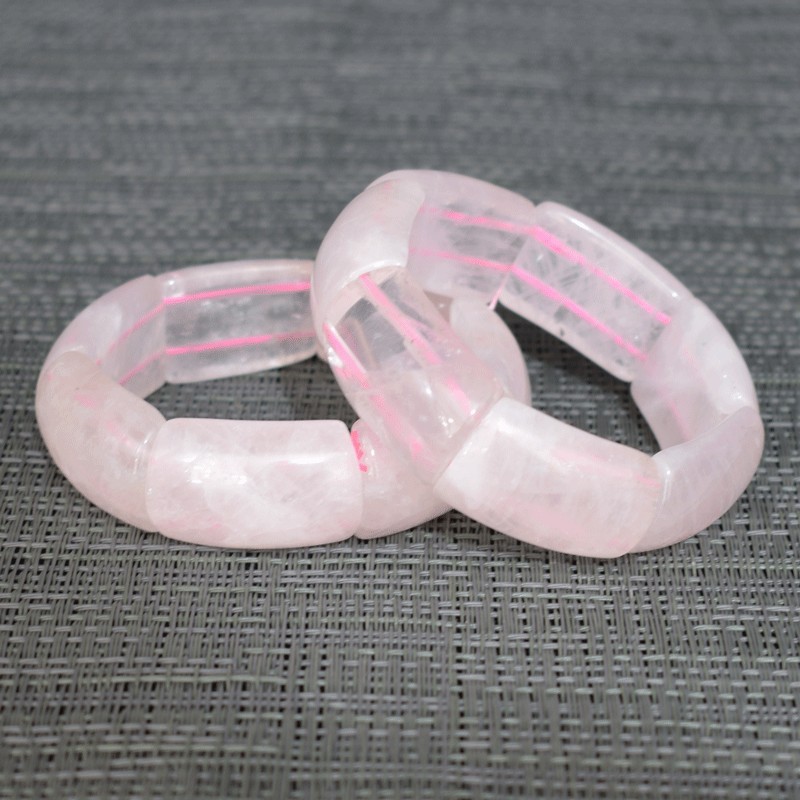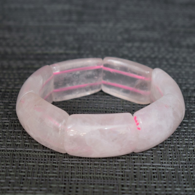 Elegante pulsera de Cuarzo rosa, perlas talladas alargadas.