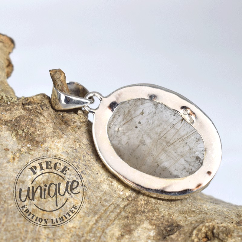 Bello colgante de Cuarzo rutilado montado en plata de 925.