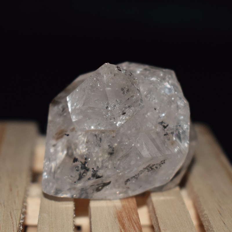 El Diamante de Herkimer es un cristal de roca pequeño, biterminado. Su composición es un dióxido de silicio, SiO2.