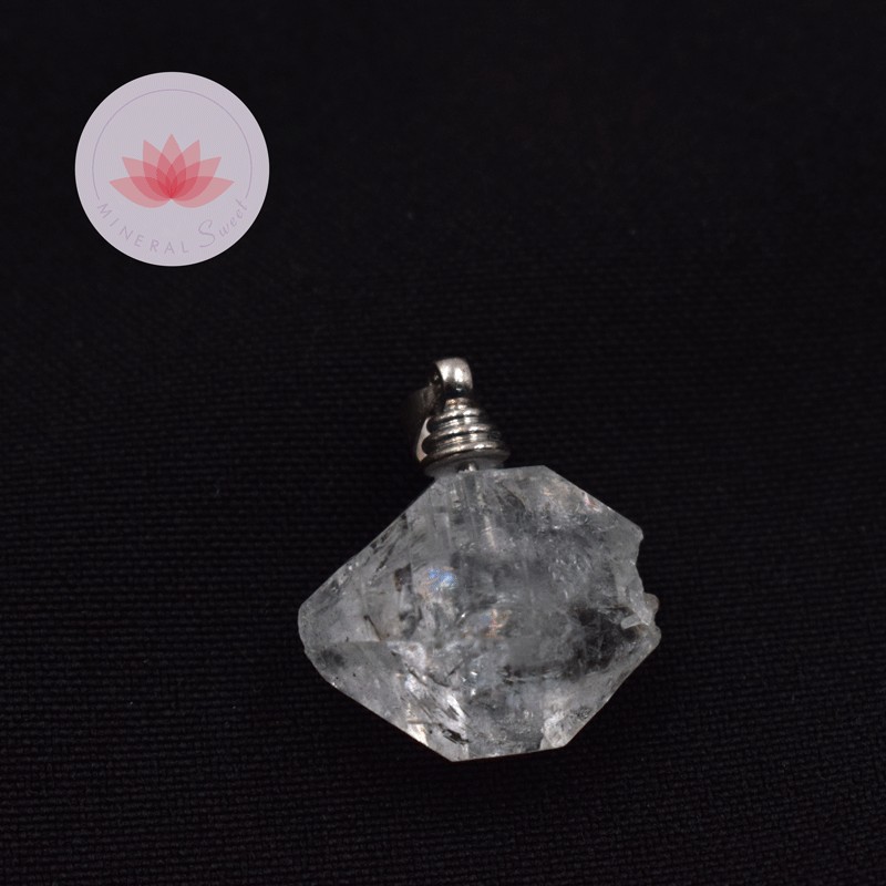 El Diamante de Herkimer es un cristal de roca pequeño, biterminado. Su composición es un dióxido de silicio, SiO2.