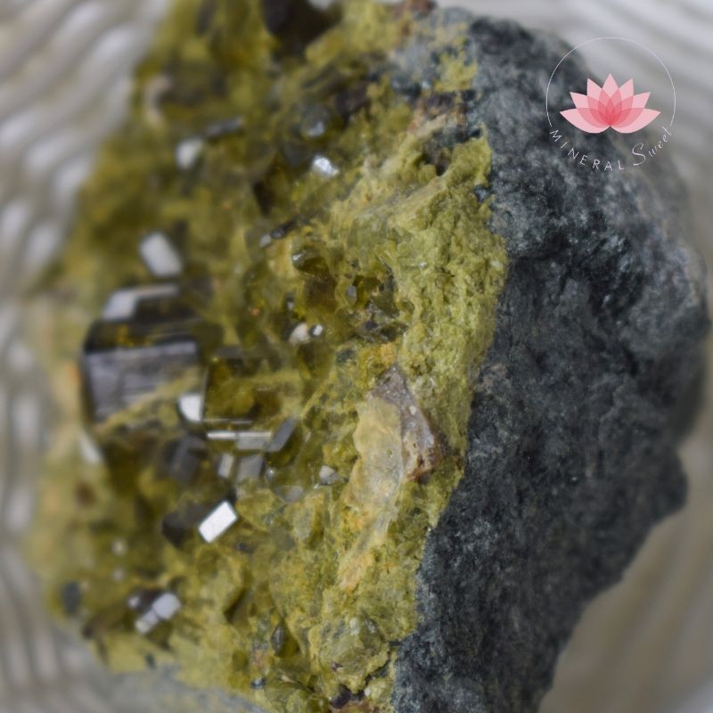 Bella pieza de colección de Epidota bruta, con bonitas cristalizaciones.