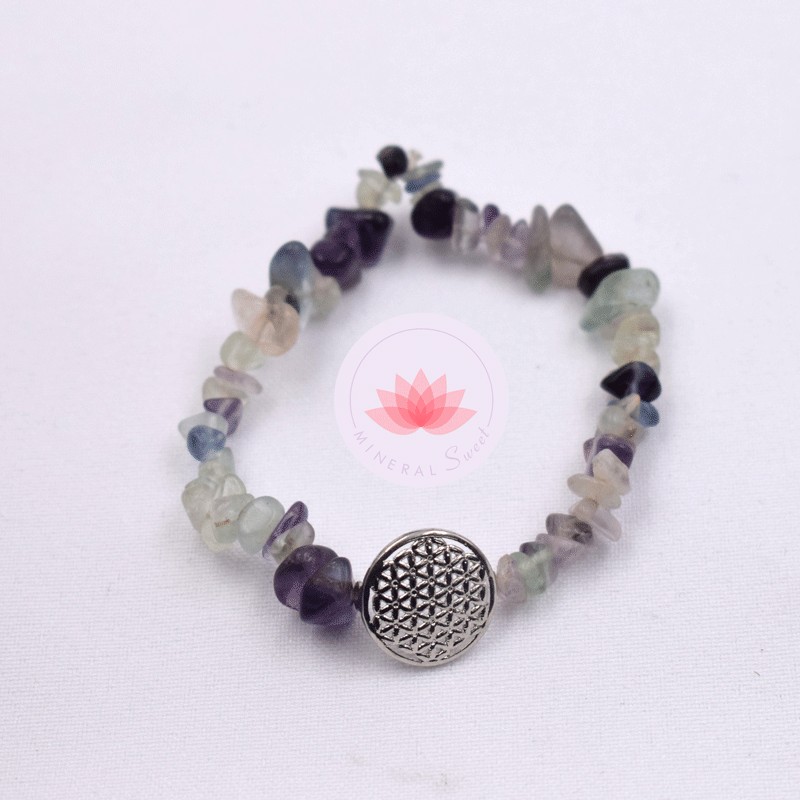 Fluorita pulsera barroca con flor de vida