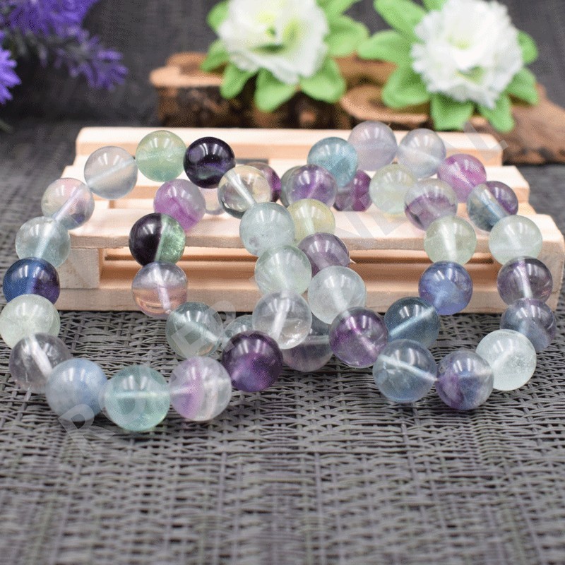 Elegante pulsera en perlas de Fluorita multicolor, perlas 12mm