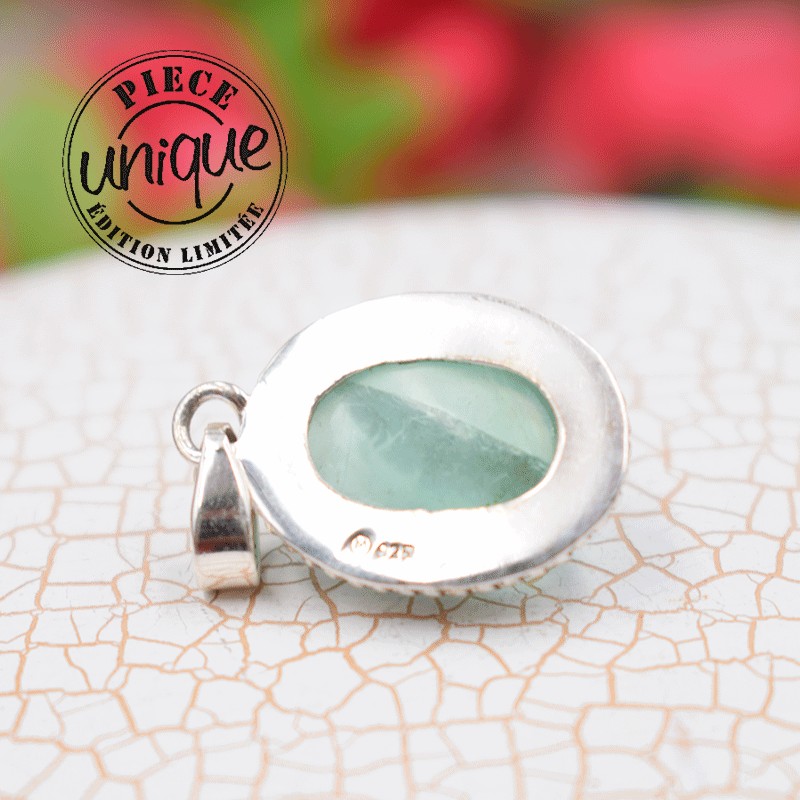 Bello colgante de Fluorita verde montado en plata de 925.
