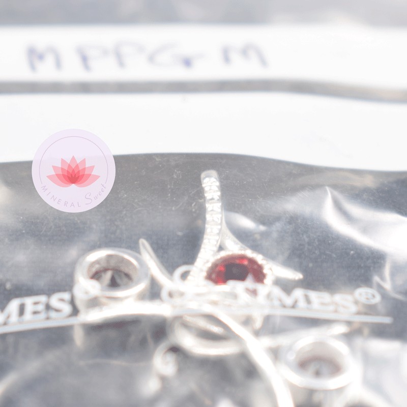 Conjunto colgante Granate lazo mini con cadena plata 40cm