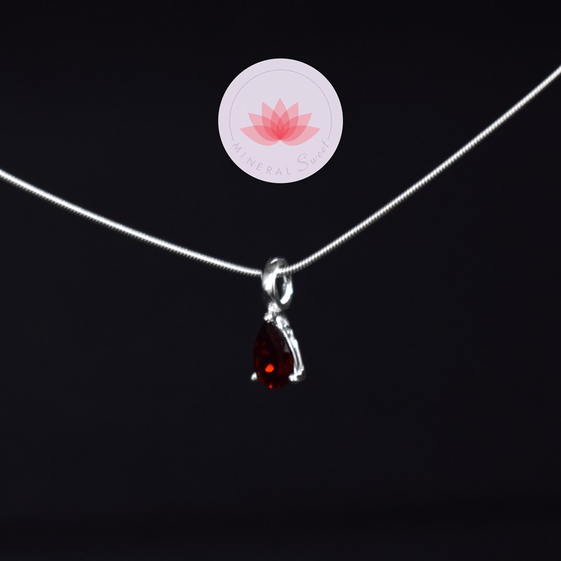 Conjunto colgante mini Granate lágrima 3 más cadena plata 40cm
