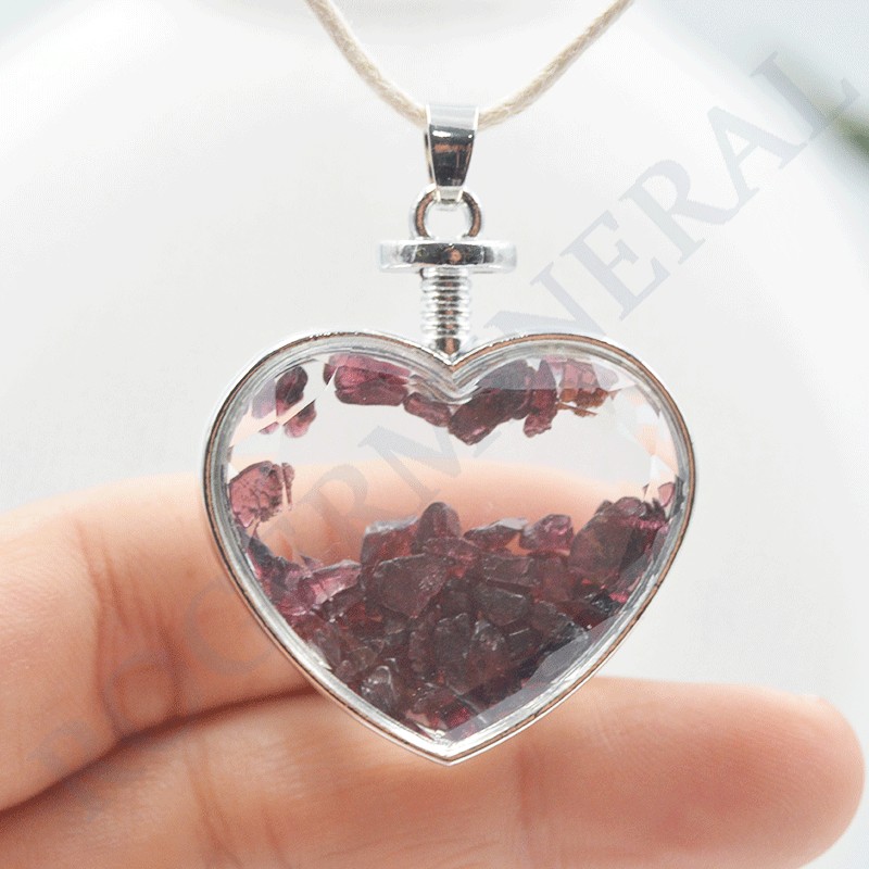 Bonito colgante en cristal con pequeñas piedras de Granate en su interior.