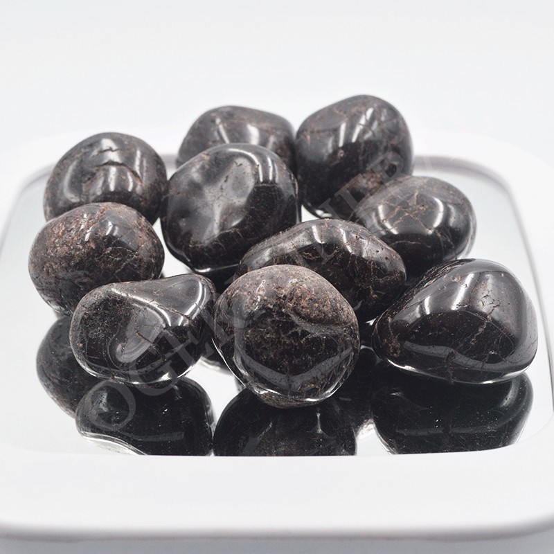 Es una piedra del primer y segundo chakras. No se puede alzar la cabeza al cielo sin, primero, haber plantado los pies sobre la Tierra con fuerza y firmeza; hay que conocer a fondo las fuerzas del primer chakra. El granate incita a mejorar, da coraje, voluntad, sentido de la justicia. Es considerada como piedra del mérito, del reconocimiento, del amor profundo.
