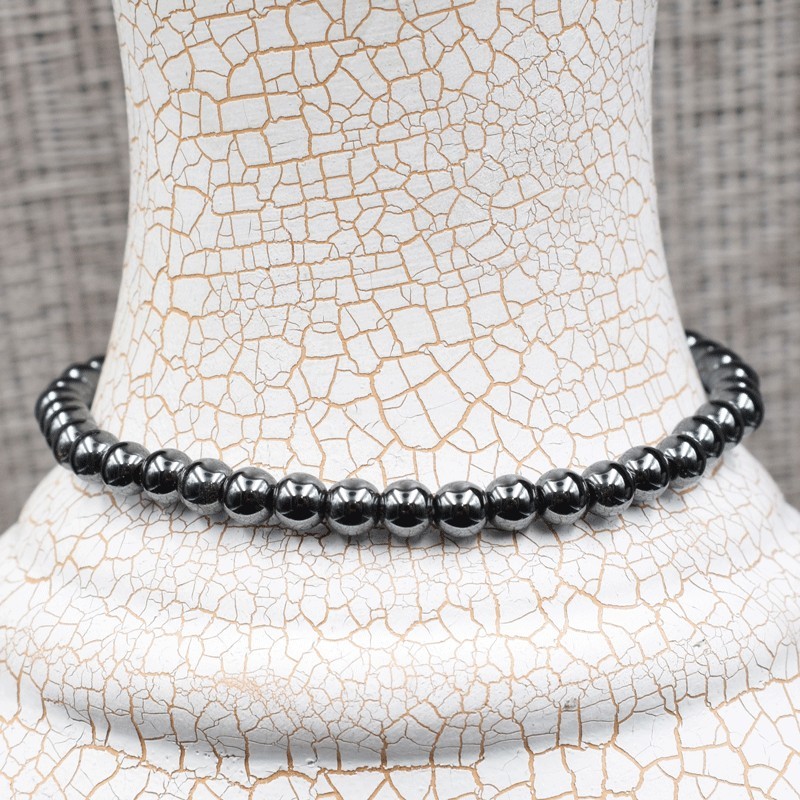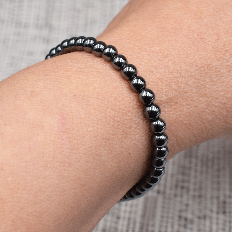 Bonita pulsera en Hematita, perlas redondas de 4mm