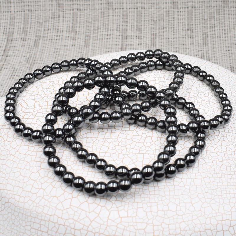 Bonita pulsera de Hematita, perlas redondas 6mm