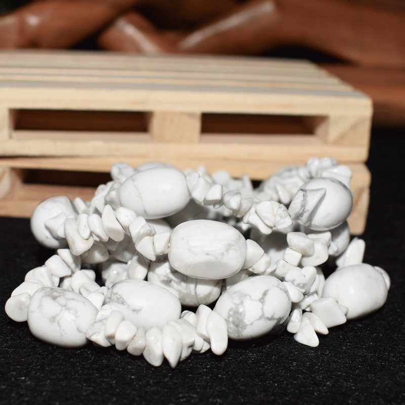 Bonita pulsera de Howlita en perlas chips y pequeñas piedras rodadas.