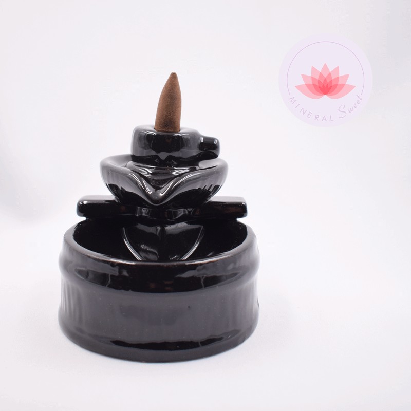 Portaincienso de cerámica en forma de fuente para quemar incienso en cono.