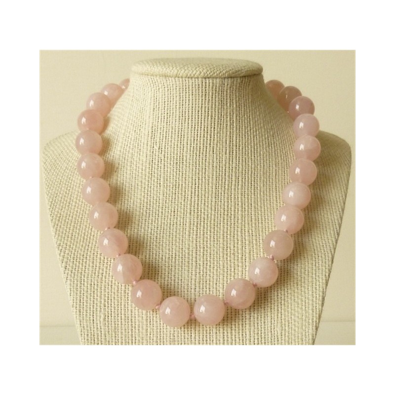 Bello collar de Cuarzo rosa, perlas redondas de 14mm