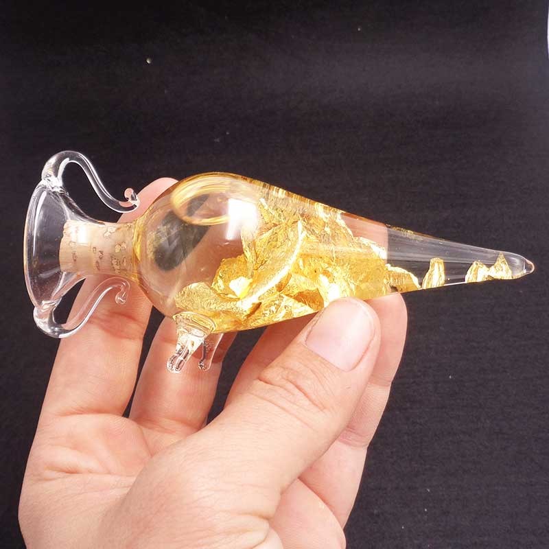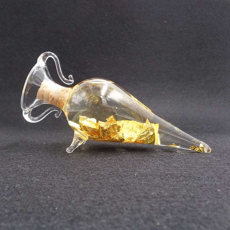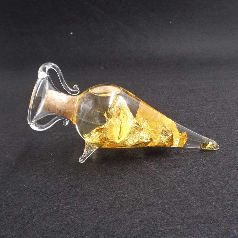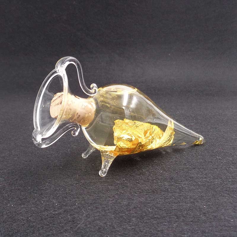 Ánfora de cristal con hojas de oro en su interior. Certificado de autenticidad, oro de Brasil.