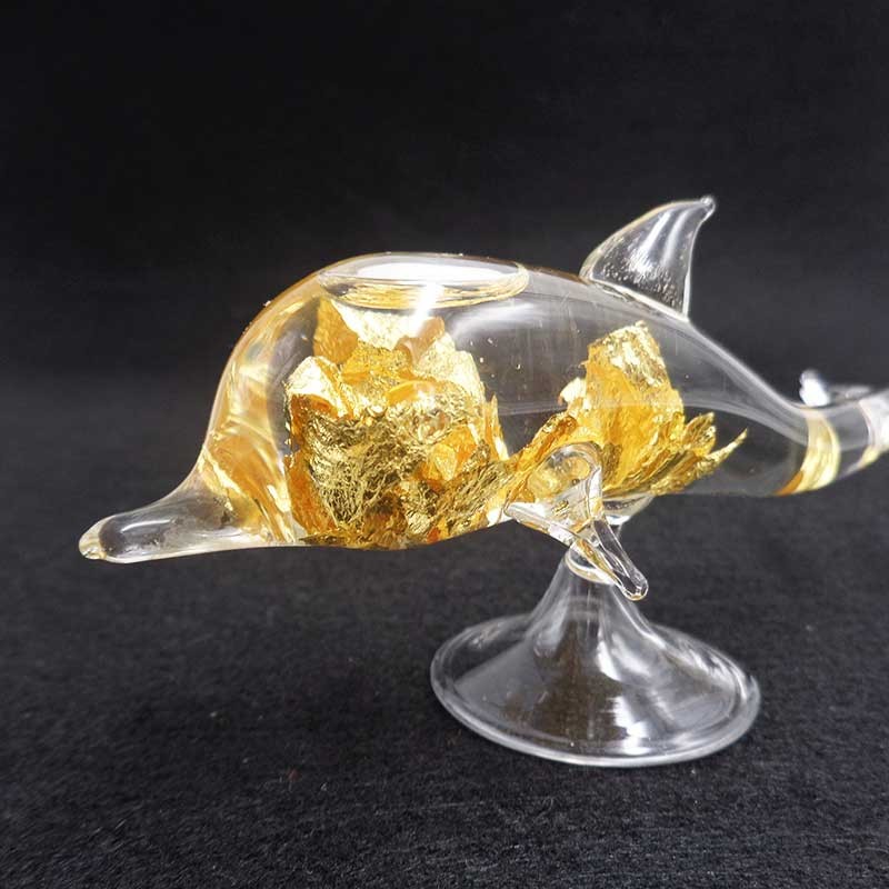 Hojas de Oro en delfín de cristal