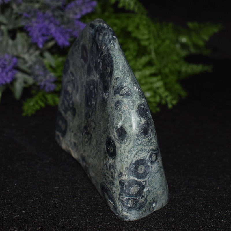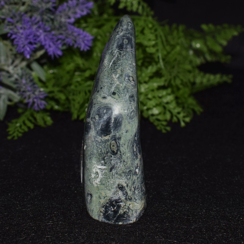 Piedra de equilibrio por excelencia, el jaspe favorece las cualidades de la persona. Por su color, el jaspe Kimbaba u orbicular está relacionado con el txakra 4, el corazón. Sus dibujos proporcionan impulsión al movimiento, mayor abertura de espíritu, el deseo de nuevas experiencias... Es una piedra que abre a la alegría y al buen humor.