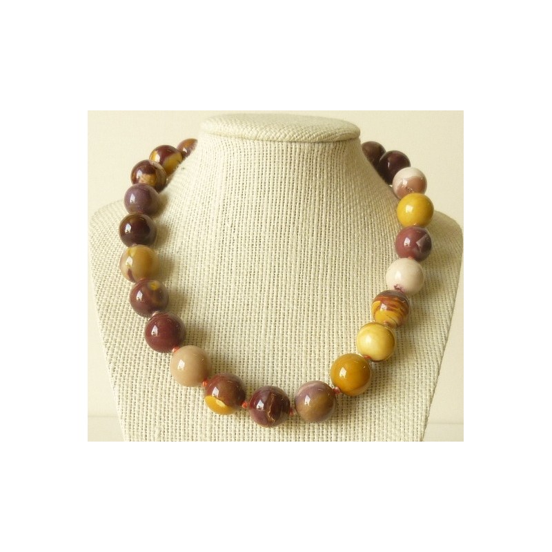 Bonito collar en Jaspe mokaíta, perlas redondas de 16mm