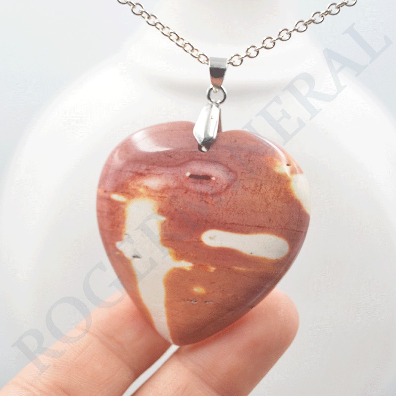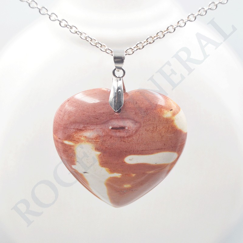 Bonito colgante en forma de corazón en Jaspe mokaíta. Lleva una anilla en metal plateado.