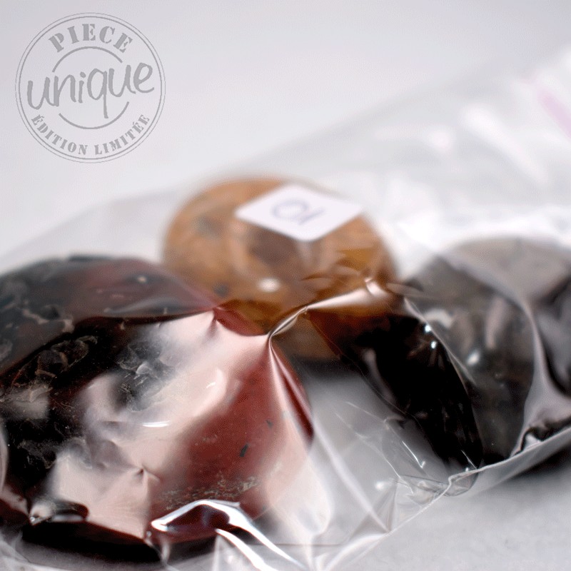 Este jaspe en particular, por sus dibujos, ofrece el simbolismo del movimiento. Por sus colores, está relacionado con los chakras 3 y 4 principalmente (plexo solar y corazón).