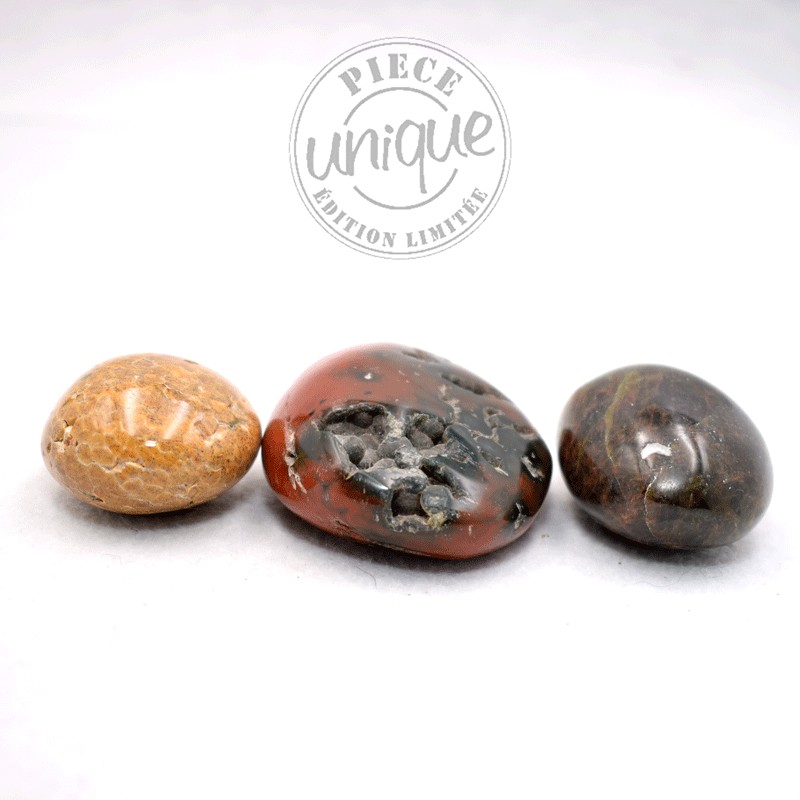 Bonito lote compuesto por 3 piedras pulidas de Jaspe orbicular de Madagascar.