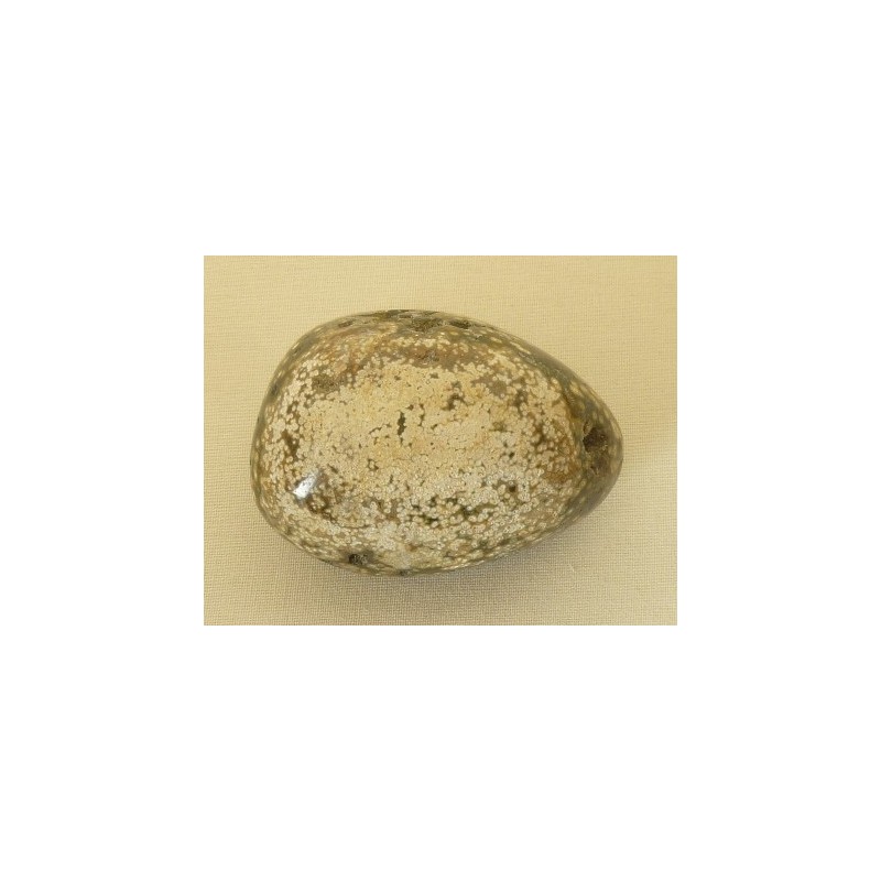 Este jaspe en particular, por sus dibujos, ofrece el simbolismo del movimiento. Por sus colores, está relacionado con los chakras 3 y 4 principalmente (plexo solar y corazón).