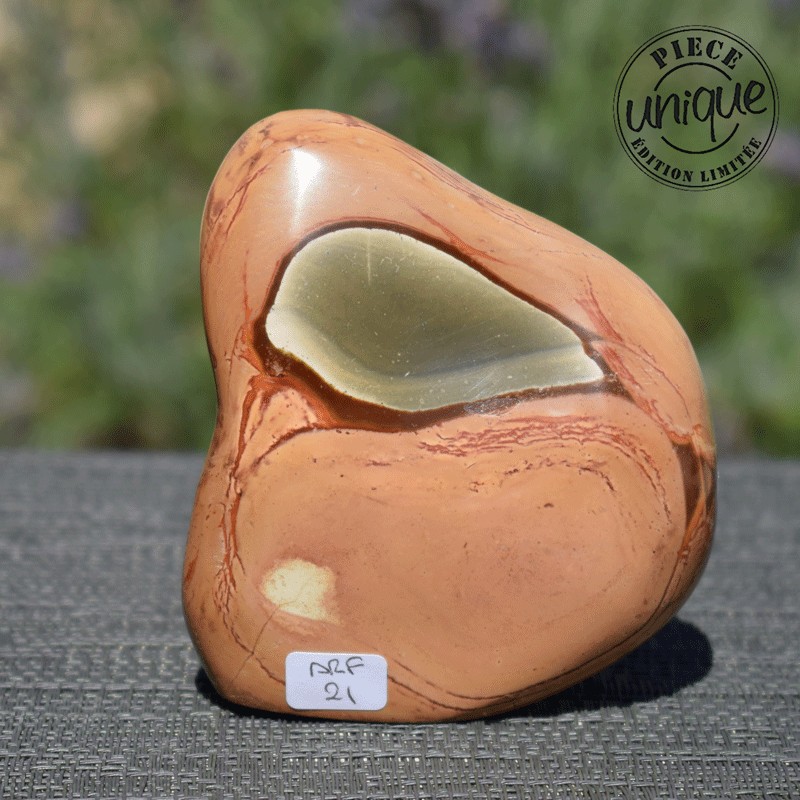 Como todos los jaspes, éste nos ofrece equilibrio, abertura de espíritu, fecunda las ideas y la creatividad. Su aspecto invita al viaje interior, a descubrir las propias capacidades de invención y de realización.