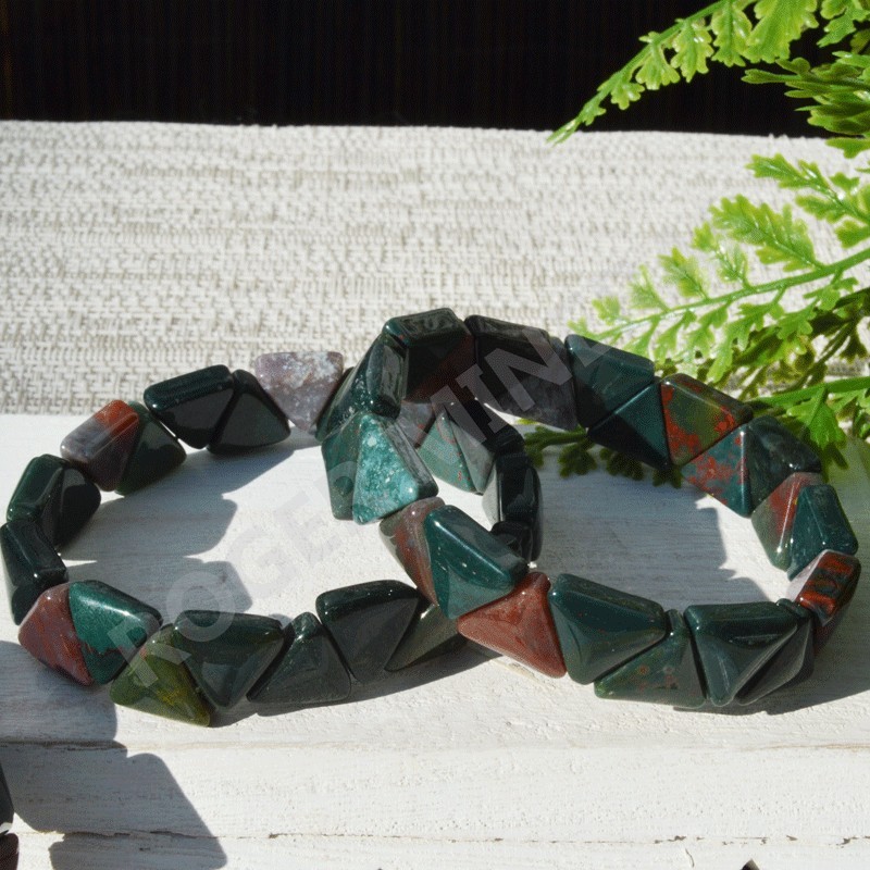 Elegante pulsera de Jaspe policromo, perlas talladas en triángulo.