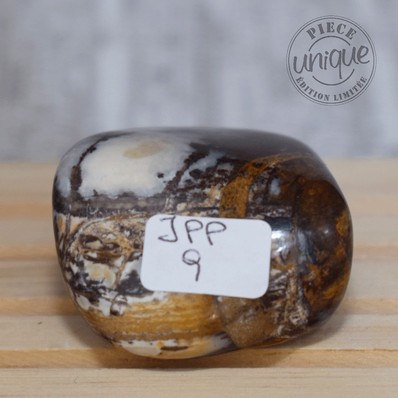 Como todos los jaspes, éste nos ofrece equilibrio, abertura de espíritu, fecunda las ideas y la creatividad. Su aspecto invita al viaje interior, a descubrir las propias capacidades de invención y de realización.