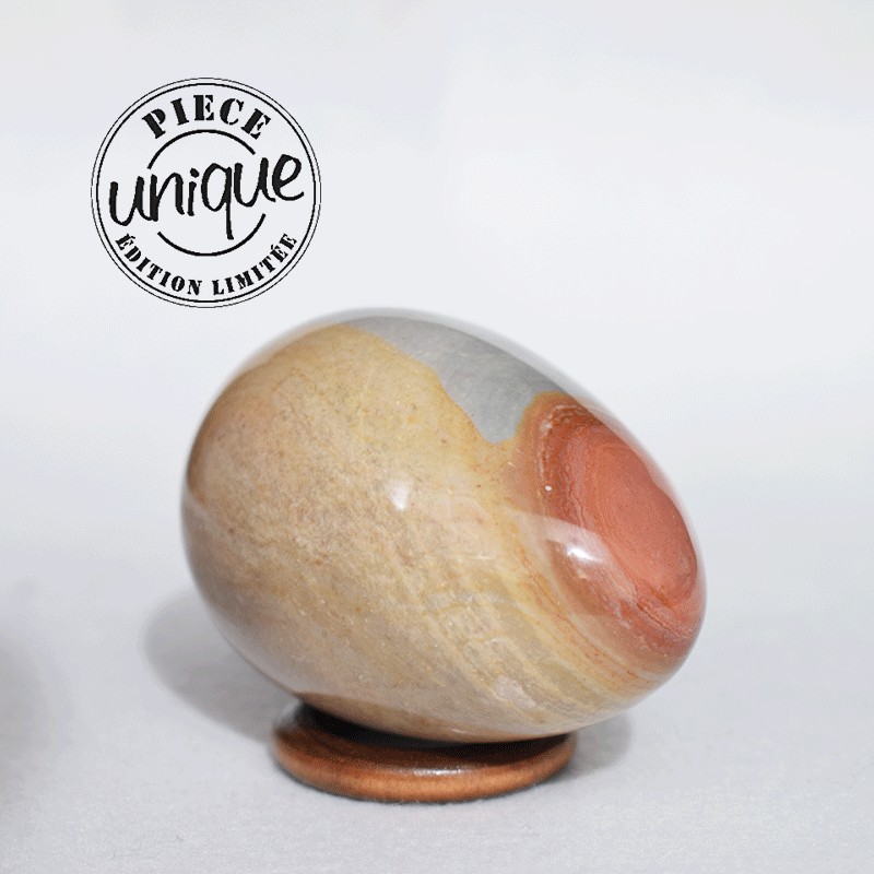 Como todos los jaspes, éste nos ofrece equilibrio, abertura de espíritu, fecunda las ideas y la creatividad. Su aspecto invita al viaje interior, a descubrir las propias capacidades de invención y de realización.