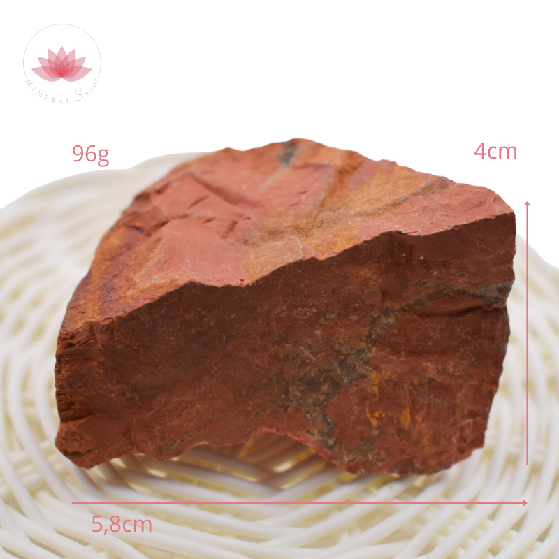 Como todos los jaspes, el rojo es una piedra de equilibrio, de enraizamiento. Igualmente, por su color, es vivificador, tonifica, reconforta el espíritu con decisión, voluntad, discernimiento, coraje... Crea un vínculo con la realidad cotidiana, con la vida. Es un buen estimulador emocional.