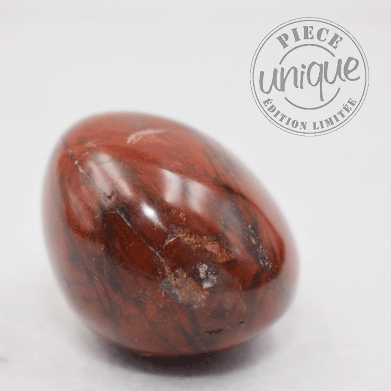 Como todos los jaspes, el rojo es una piedra de equilibrio, de enraizamiento. Igualmente, por su color, es vivificador, tonifica, reconforta el espíritu con decisión, voluntad, discernimiento, coraje... Crea un vínculo con la realidad cotidiana, con la vida. Es un buen estimulador emocional.