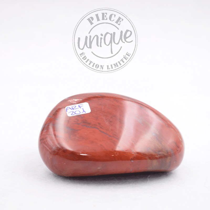 Como todos los jaspes, el rojo es una piedra de equilibrio, de enraizamiento. Igualmente, por su color, es vivificador, tonifica, reconforta el espíritu con decisión, voluntad, discernimiento, coraje... Crea un vínculo con la realidad cotidiana, con la vida. Es un buen estimulador emocional.
