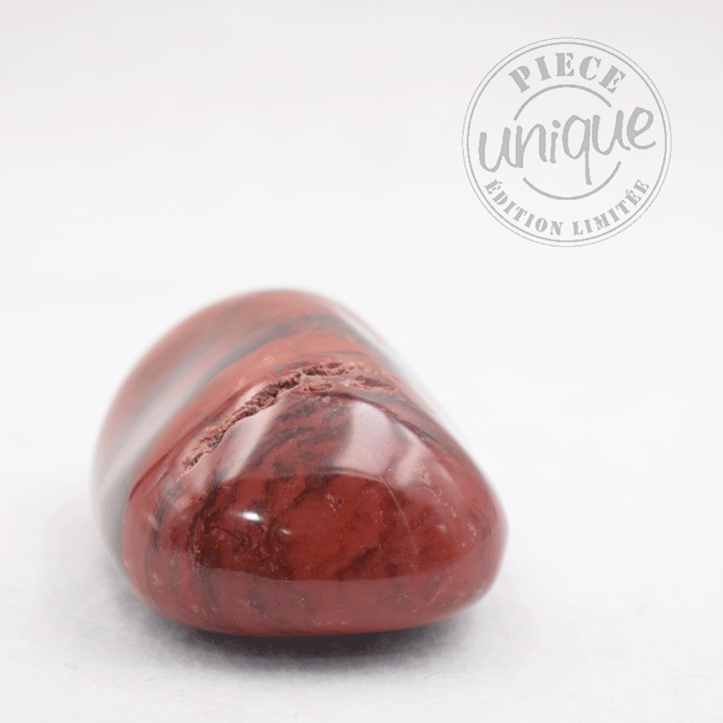 Como todos los jaspes, el rojo es una piedra de equilibrio, de enraizamiento. Igualmente, por su color, es vivificador, tonifica, reconforta el espíritu con decisión, voluntad, discernimiento, coraje... Crea un vínculo con la realidad cotidiana, con la vida. Es un buen estimulador emocional.