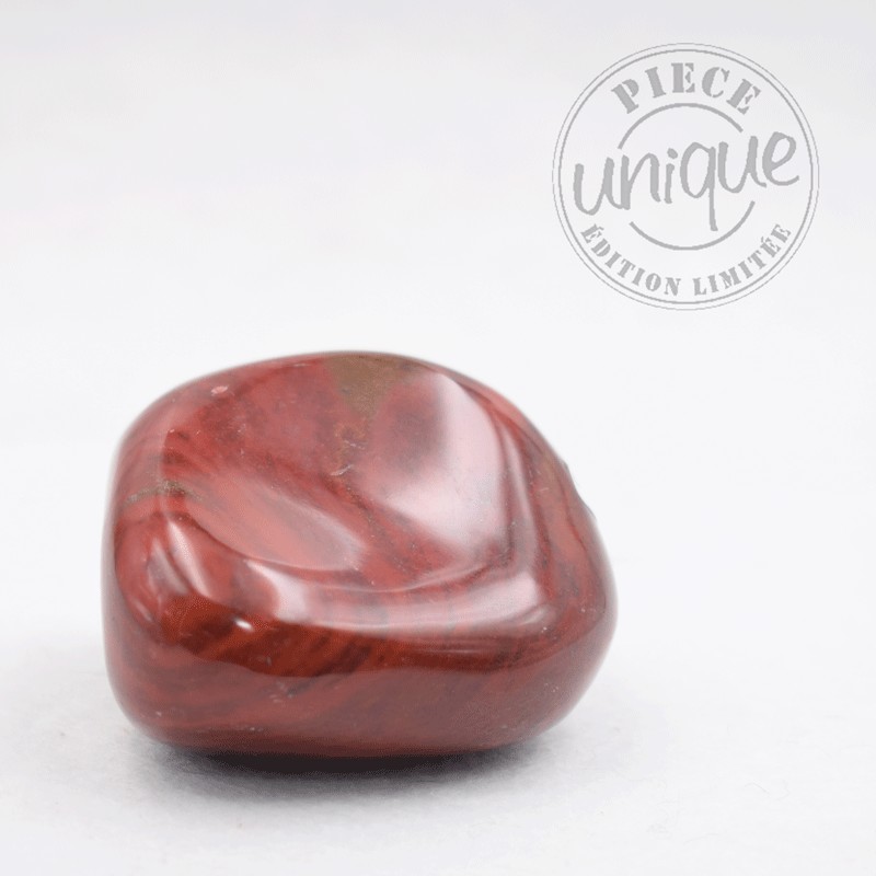 Como todos los jaspes, el rojo es una piedra de equilibrio, de enraizamiento. Igualmente, por su color, es vivificador, tonifica, reconforta el espíritu con decisión, voluntad, discernimiento, coraje... Crea un vínculo con la realidad cotidiana, con la vida. Es un buen estimulador emocional.