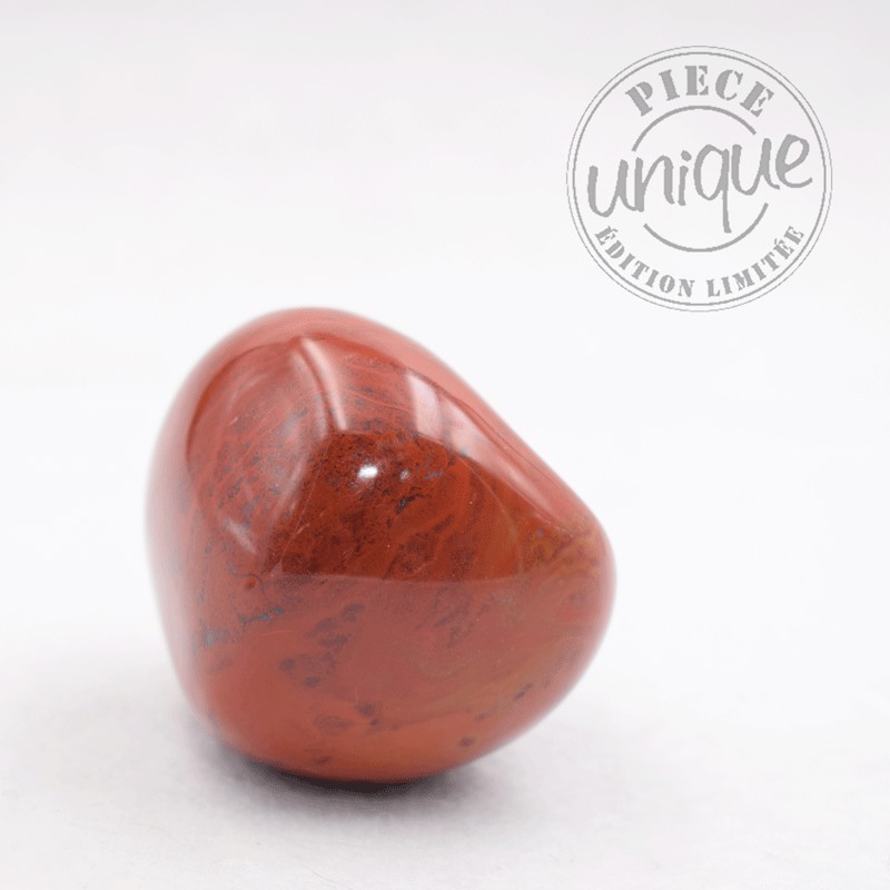 Como todos los jaspes, el rojo es una piedra de equilibrio, de enraizamiento. Igualmente, por su color, es vivificador, tonifica, reconforta el espíritu con decisión, voluntad, discernimiento, coraje... Crea un vínculo con la realidad cotidiana, con la vida. Es un buen estimulador emocional.