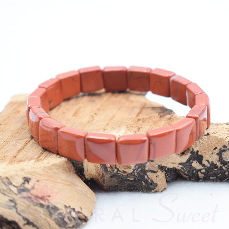 Elegante pulsera en Jaspe rojo, perlas cuadradas de 10mm